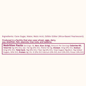 These 16 fl oz glass bottles contain a rich simple syrup infused with FDA-approved edible glitter (made out of the mineral mica, not micro-plastics or anything bad). The glitter swirls around the bottles and will make a great addition to everyone's cocktail cart or coffee station. It's great with cocktail, mocktails, iced tea, hot tea, coffee, and more. We love to add it to our margaritas with some fresh lime juice as well as to old fashioneds and mojitos. Because this is a rich simple syrup (i.e., two parts sugar to one part water) customers will get a lot of bang for their buck - as with all Wood Stove Kitchen products! In addition, the thickness of the syrup means that the glitter stays suspended and sparkly for hours on the shelf.